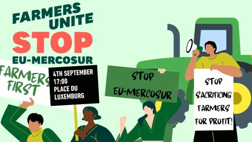 ECVC farmers from Belgian, France, Germany, and the Netherlands will join civil society actors this Thursday at 5pm in Place du Luxembourg in Brussels to call for an end to the EU-Mercosur FTA. This FTA, alongside the EU-US trade deal and proposed CAP’s dismantling, represent successive attacks by the European Commission on farmers income and rights in recent months. Despite promises to address low income and prices for farmers and agricultural workers, the European Commission is pushing policies that will slash both farmers market income and public aid at the same time, in fact deepening the crises in the agricultural sector.